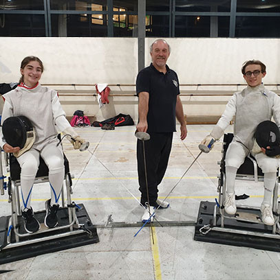 L'U.S.M.R. escrime possède plusieurs pistes handisport pour que les personnes en situation de handicap puissent pratiquer de l'escrime fauteuil avec les valides.